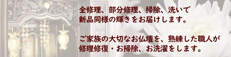 A.可能です。金箔の一部だけ張り替えたい、 傷を修復したい、目立つ一部の汚れだけを落としたい、お仏壇・仏具・仏像、 些細なことでもなんでもお申し付けください。